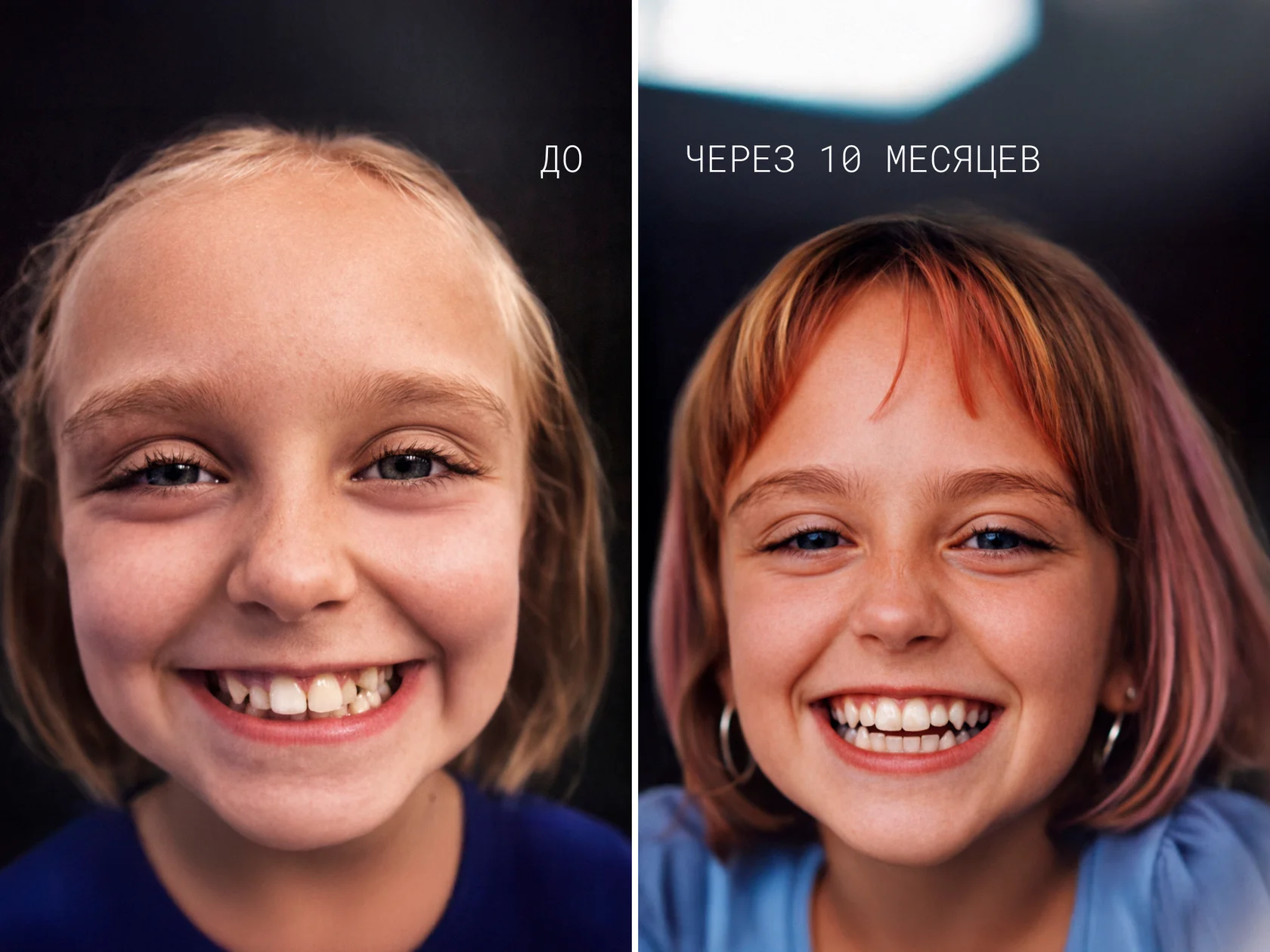 Для коррекции прикуса у девочки использованы индивидуальные элайнеры, спроектированные на основе 3D‑сканирования челюстей и цифрового моделирования будущего результата. Последовательная смена капп обеспечила контролируемые микродвижения зубов, выровняла дуги и улучшила поддержку мягких тканей лица всего за 10 месяцев, без металлических дуг, ограничений в питании и заметных аппаратов в повседневной жизни.